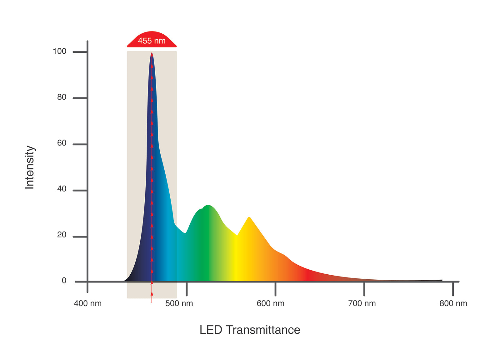 455 nm is the most harmful wavelength emitted from your child's digital devices and energy efficient LED lights.